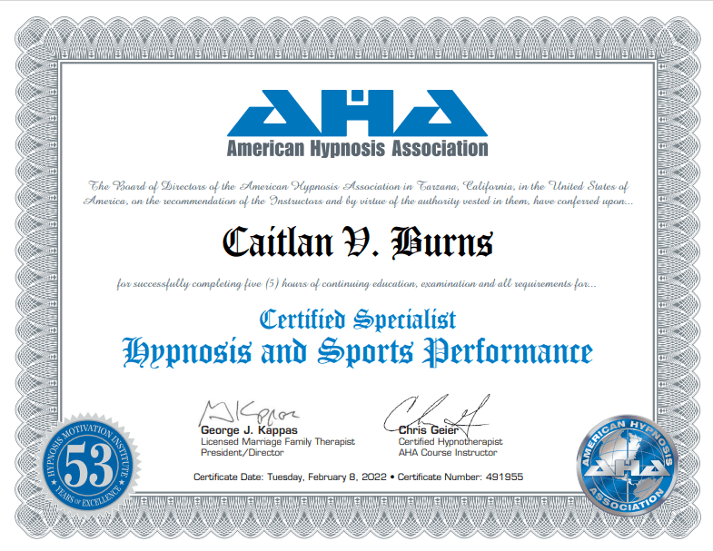 Hello, I’m Caitlan Burns CMH, a Certified Master Hypnotist with 300 hours of hypnosis training from the Hypnosis Motivation Institute, the only Hypnosis school in the United States accredited by the government I’m still attending and will soon qualify to become a Certified Hypnotherapist.